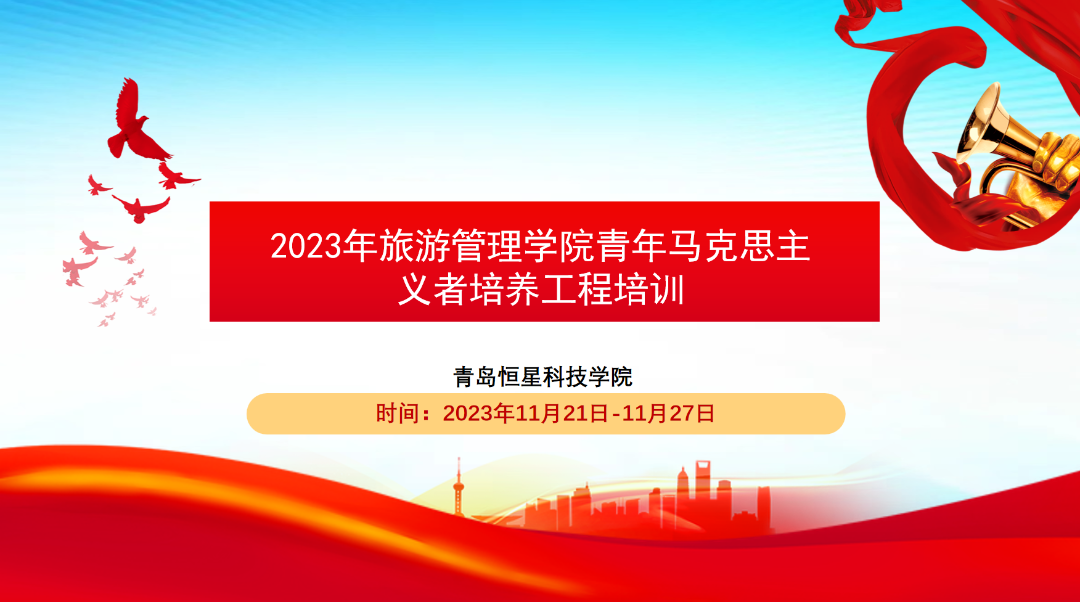 “青马工程”是青年马克思主义者培养工程的简称。2007年,团中央在相关部委的支持下,启动实施了“青马工程”,旨在为党培养信仰坚定、能力突出、素质优良、作风过硬的青年政治骨干。 为不断提升我院学生骨干、团支部、青年知识分子等青年群体的思想政治素质、政策理论水平、创新能力、实践能力和组织协调能力,进一步坚定跟党走中国特色社会主义道路的信念,成长为中国特色社会主义事业的合格建设者和可靠接班人。旅游管理学院将举办为期一周的青年马克思主义者培养工程培训,并于2023年11月21日在红信书院举办培训开班仪式。出席本次开班仪式的领导老师有旅游管理学院党总支书记、执行院长郭宇锋;旅游管理学院团总书记尚园;辅导员张晓艳老师、徐爽老师、单翔宇老师、杨珍老师、王伟杰老师、刘晗老师以及程明豫老师。