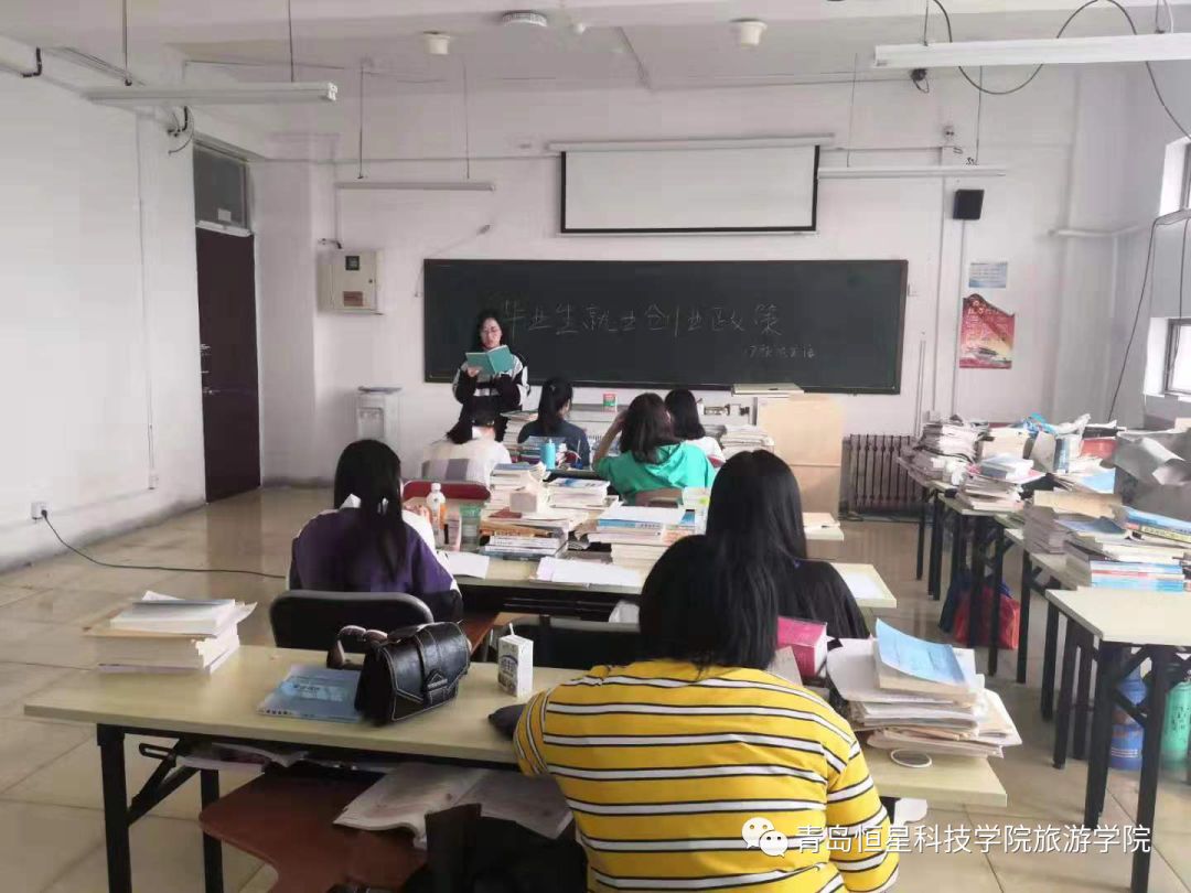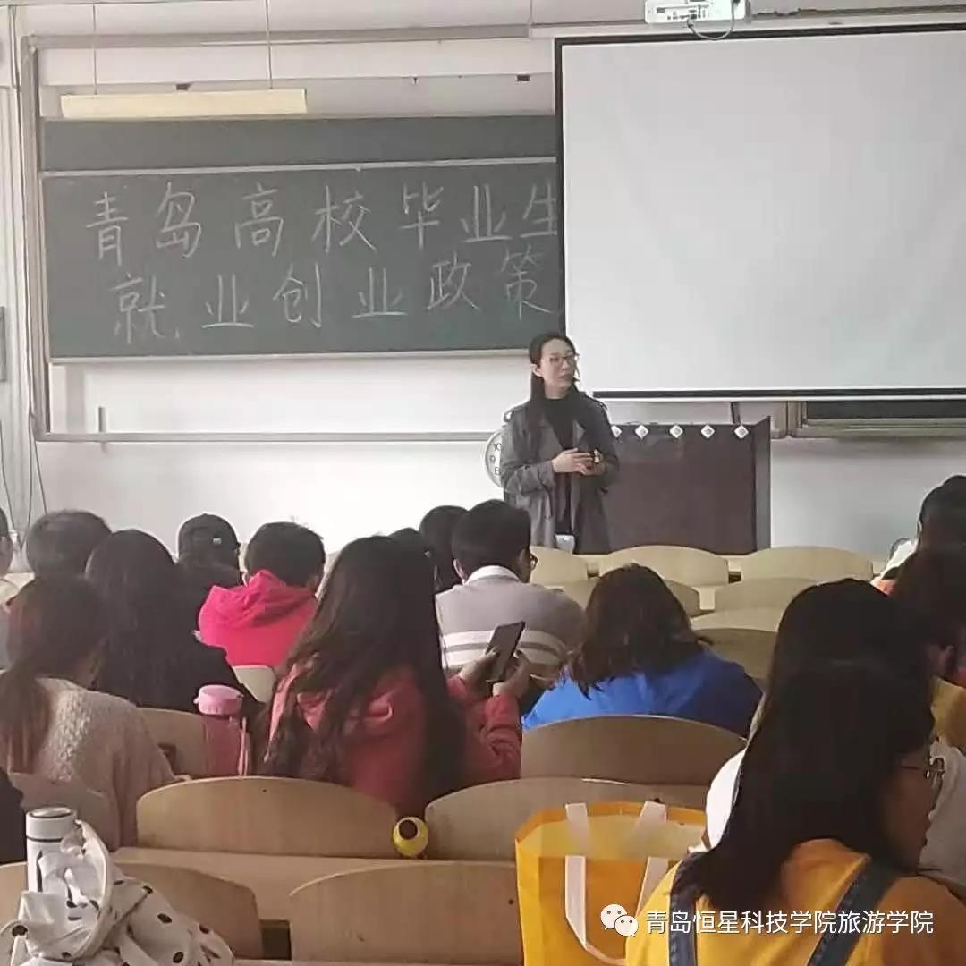 旅游学院17旅游管理班主任王锡兰老师为学生们讲解了就业、创业政策的好处,同学们积极响应老师的号召。