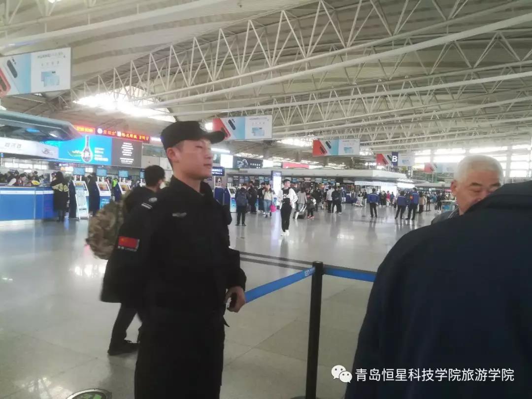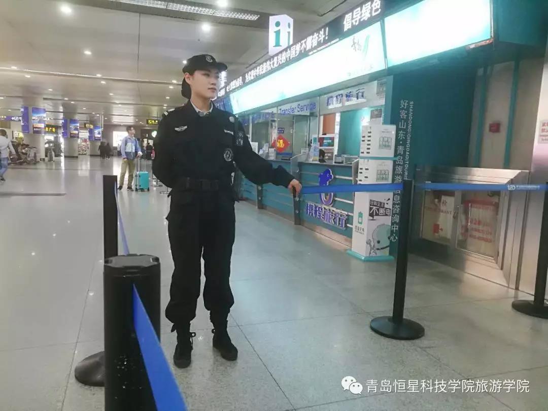 旅游学子在青岛流亭机场担任防爆检查岗位