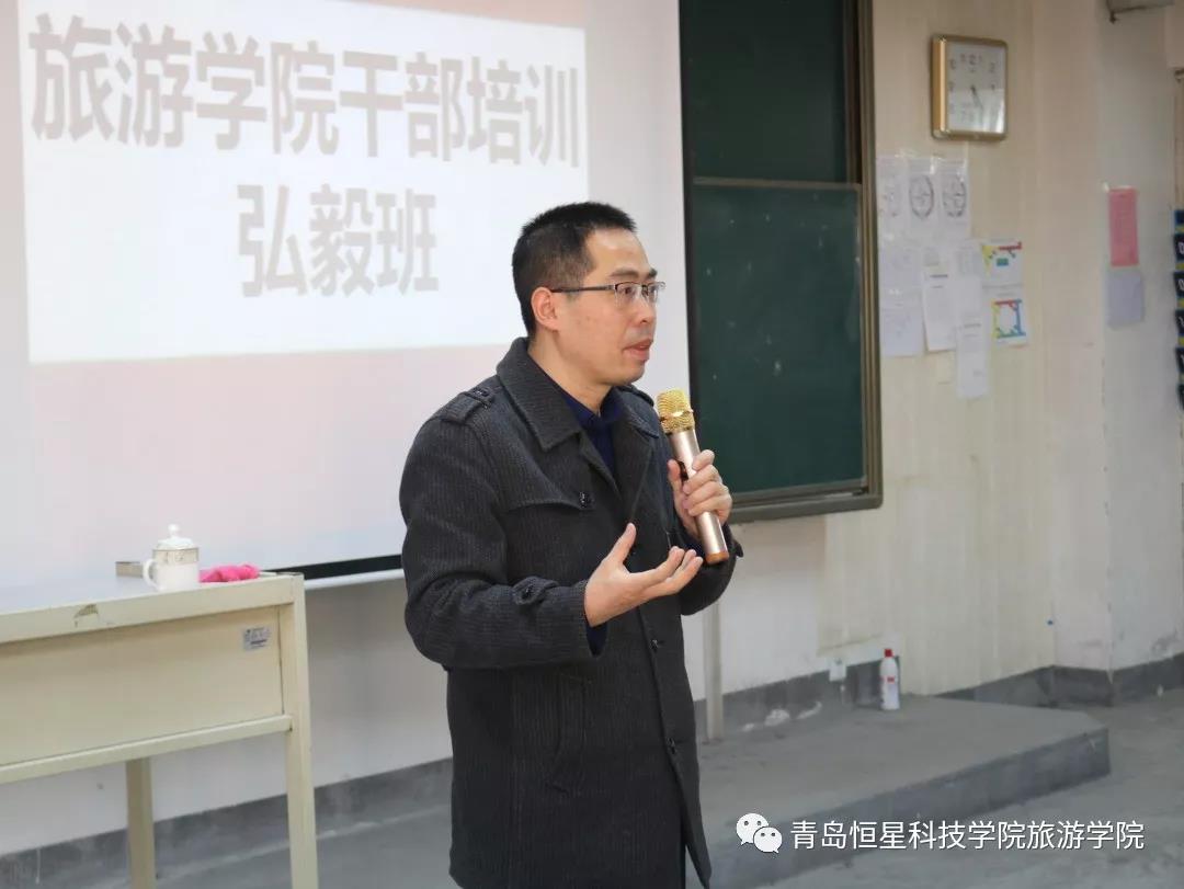 为了提升班委的自主管理能力、强化素质培养,使班委可以更好的服务管理同学、班级、学院,旅游学院于2019年3月30日在A3教学楼210教室举办了“旅游学院干部培训弘毅班”。