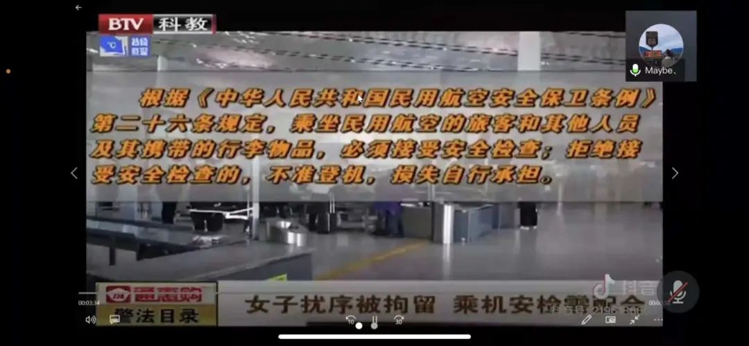 许晓萌老师对机场安全技术检查做出详细的讲解。其采用学习通软件进行授课,针对本专业学生的实际能力和水平,引入真实案例,通过视频播放和利用学习通筛选挑人的方法跟学生互动。许老师用简洁的语言,全方位讲述了该课程当中的重点、难点,授课完整,思路清晰。