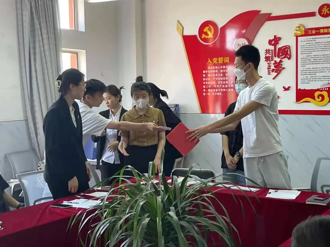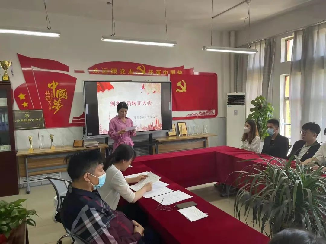 2022年5月26日,旅游学院学生党支部在A2树人楼611召开预备党员转正大会,本次会议根据学生党支部发展党员工作计划,对预备党员陈秀青、范婧、赵蕾、宫百百、张效源、范琳娜等6名同志能否按期转正分别进行讨论和表决。