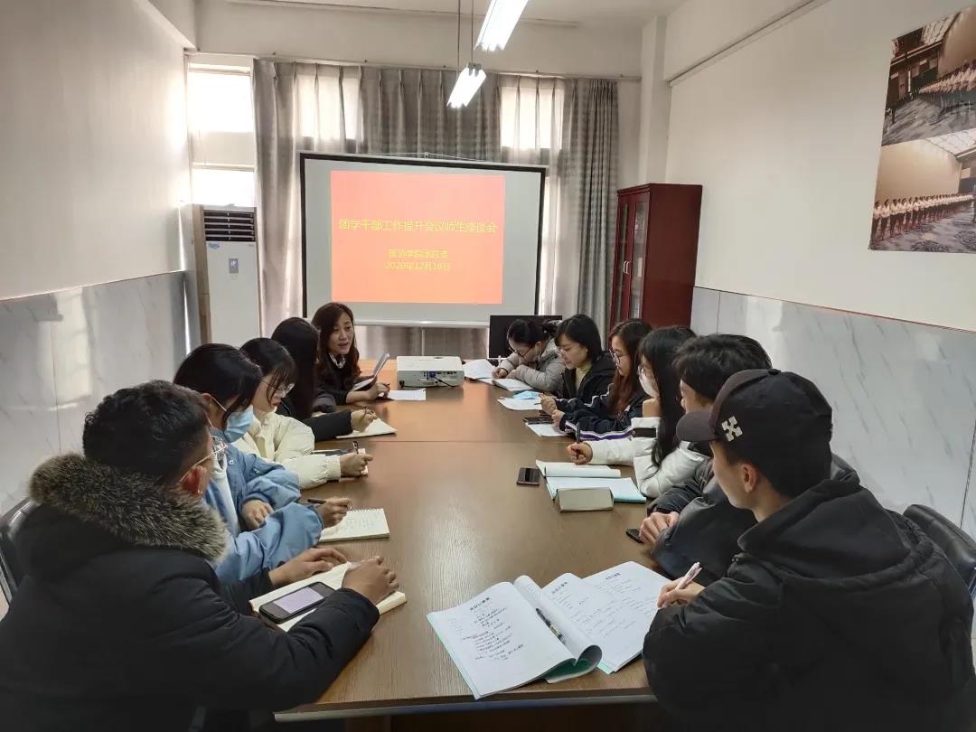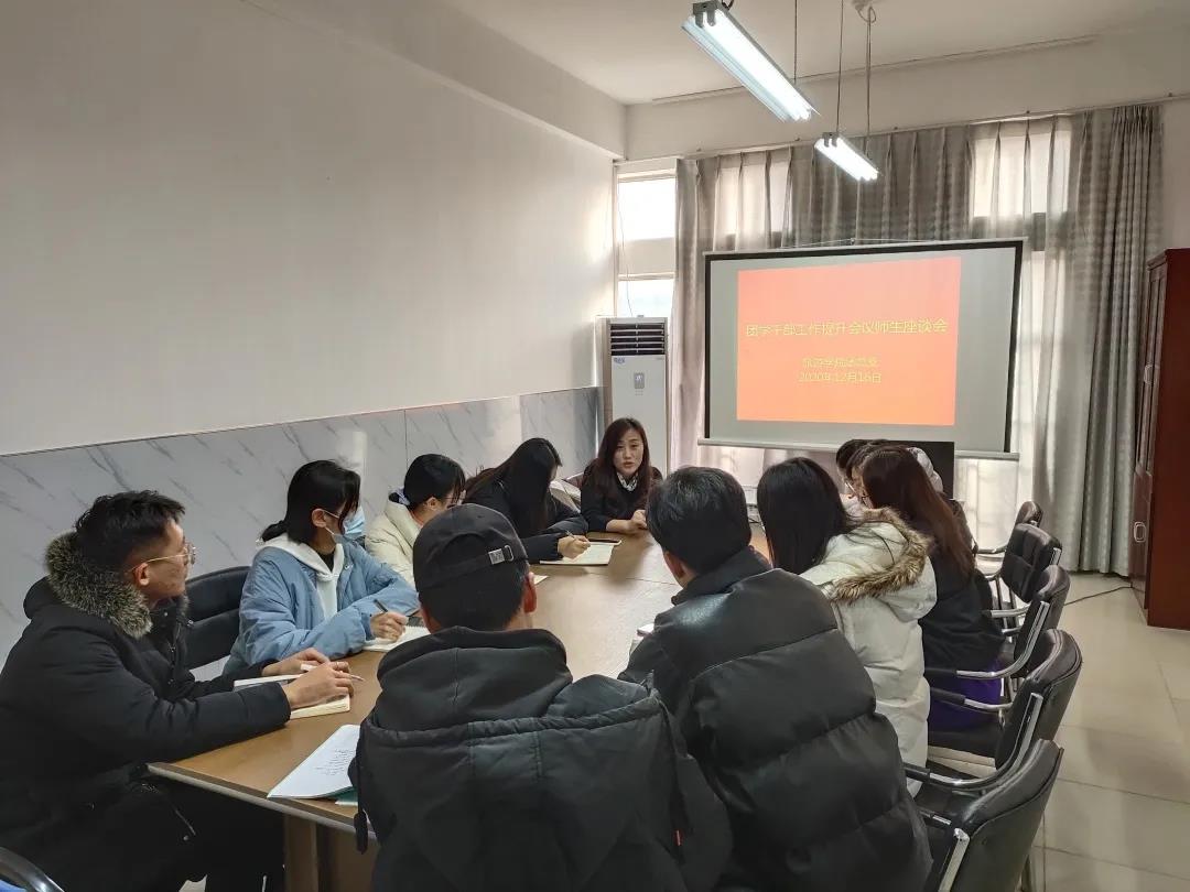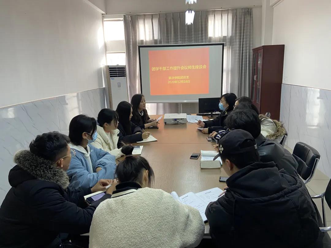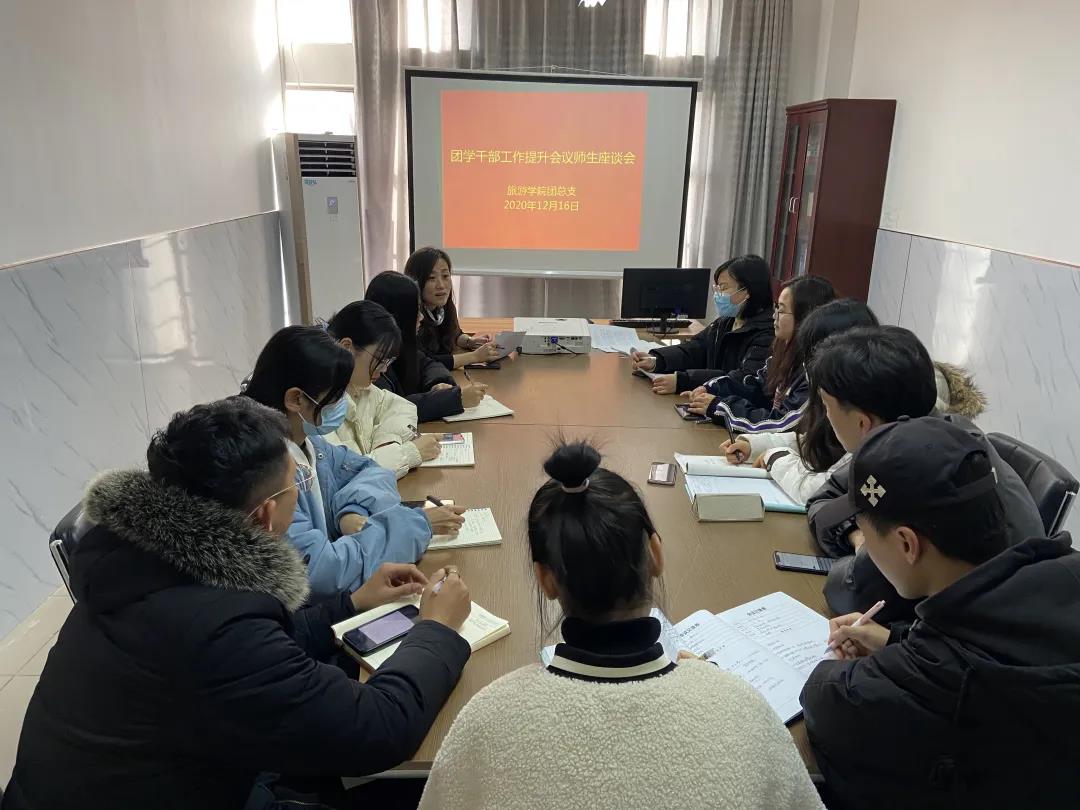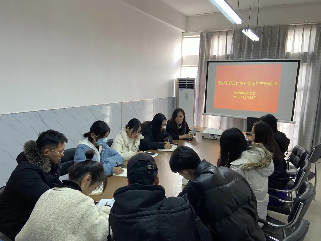 为深入贯彻习近平总书记关于青年工作的重要思想,强化团学干部的工作作风,推动学校共青团和学生会深化改革,12月17日下午14:00,我院在树人楼611会议室召开了旅游学院团学干部作风提升工作座谈会,参加本次会议的有思政院长尚园、辅导员曹晓玲、孙颖、何容老师,部分学生会干部及各班团支书学习委员。