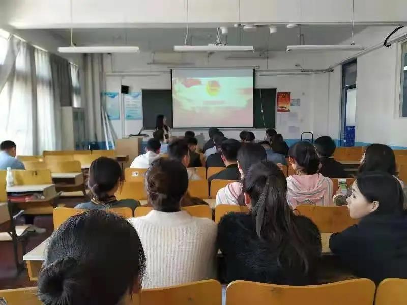 火红的旗帜引领青年的方向在实现中国梦的道路上扬帆远航。第一堂团课是曹晓玲老师给19级团员讲解的“团员发展流程”。曹晓玲老师讲道团章规定,年龄在十四周岁以上,二十八周岁以下的中国青年,承认团的章程,愿意参加团并在其中积极工作、执行团的决议和按期交纳团费的,可以申请加入中国共产主义青年团。