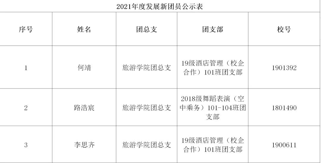 经团总支培养考察,征求团员、群众和培养联系人意见,支委会讨论研究、团委(团总支)审查,拟确定何婧、路浩宸、李思齐3名同志为团员发展对象。为增强发展团员工作的透明度,接受团内外群众的监督,确保发展团员的质量,根据上级文件精神的要求,现将拟确定发展对象的基本情况公示如下(名单附后):