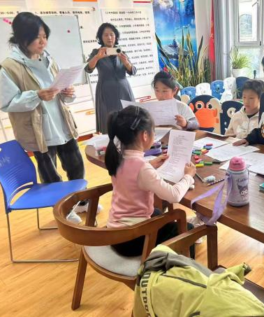朗诵环节成为孩子们展示自我的“小舞台”。志愿者主动走到小朋友身边,化身最贴心的朗诵“搭档”,开启一场温馨的配合共读。朗诵结束后,台下掌声雷动,孩子们脸上都洋溢着自豪的笑容。这一环节不仅让孩子们感受到语言的韵律之美,更在一来一往的默契互动中,拉近了心与心的距离。