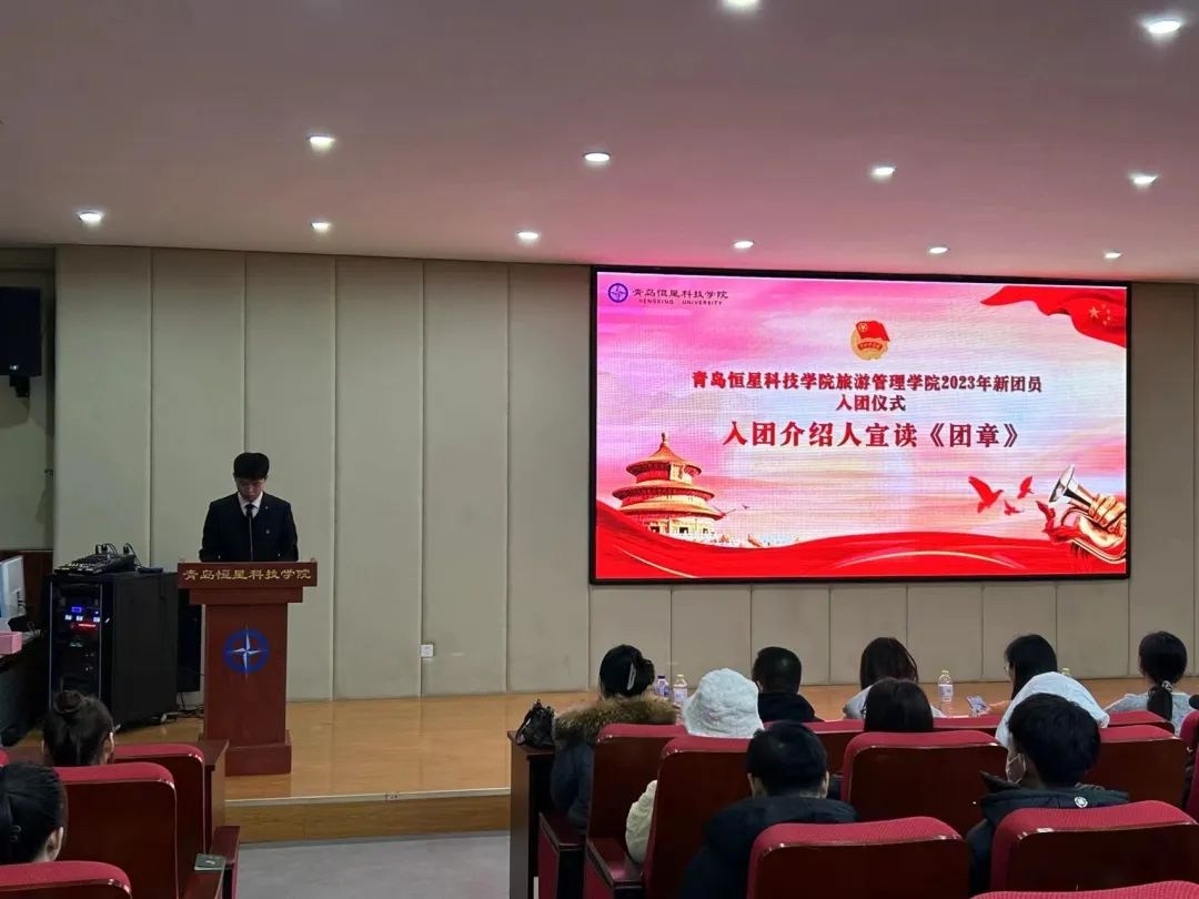 为了扎实提升共青团的政治性、先进性和群众性,为团组织注入新的活力,增强团组织的生命力和凝聚力,激励广大青年坚定理想信念,我院于12月14日在A8教学楼-110教室举办了旅游管理学院2023年新团员入团仪式暨“献礼共青团”活动。出席本次活动的有旅游管理学院团总支书记尚园书记,辅导员段存德老师、张晓艳老师、徐爽老师、单翔宇老师、刘晗老师、杨珍老师、程明豫老师。