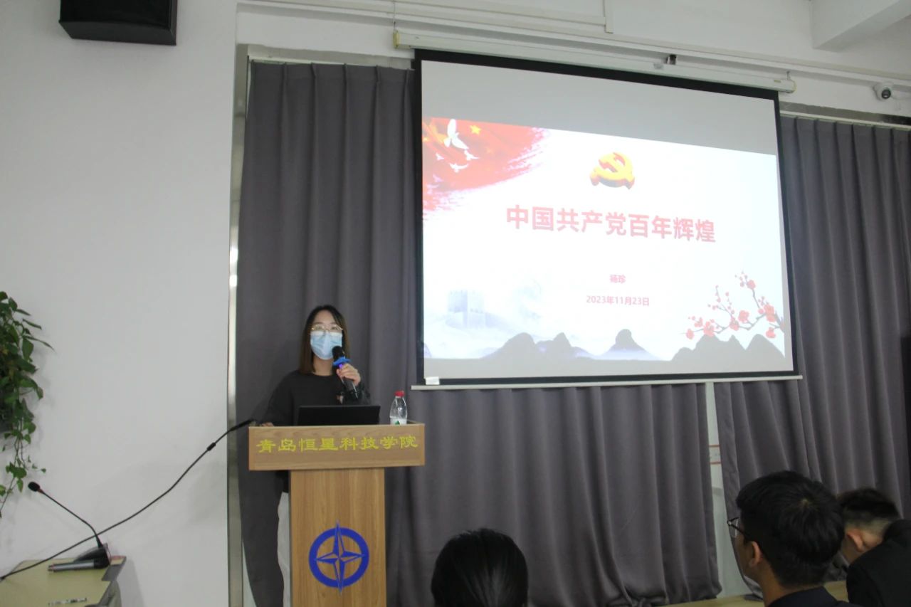 同日,杨珍老师带着同学们领略了中国共产党的百年辉煌,分别从救国大业、兴国大业、富国大业、强国大业以及中国共产党百年历史的总结五个方面进行叙述。向我们展示了什么叫做历史在人民的探索和奋斗中造就了中国共产党,中国共产党团结和带领人民创造了历史的辉煌!学党史,强信念,跟党走,做理想信念坚定的新时代优秀大学生,心中有信仰,脚下有力量,为实现中华民族伟大复兴的中国梦贡献自己的一份力量!