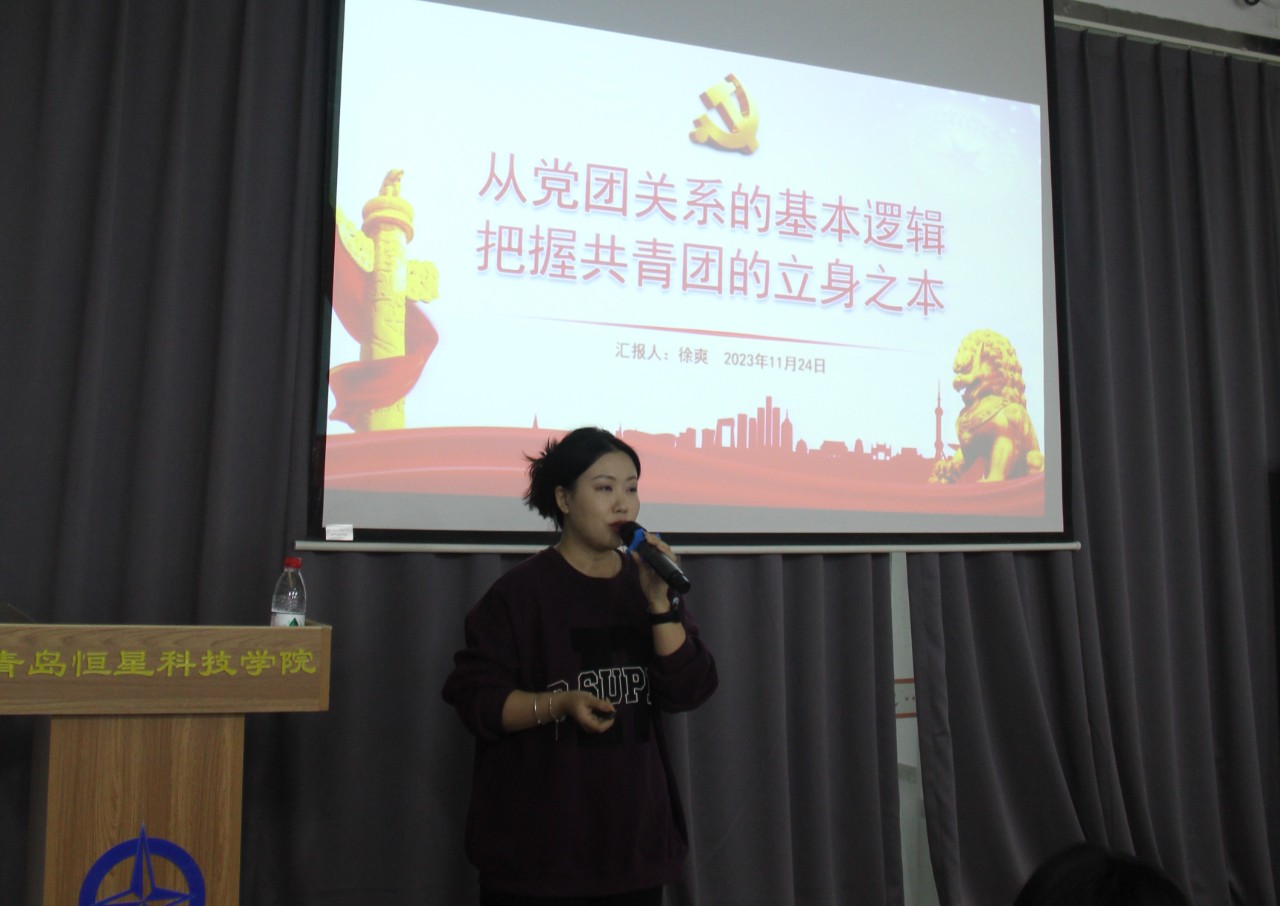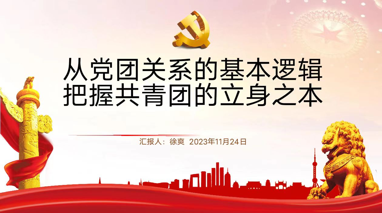 24日第二堂课,由徐爽老师给同学们讲解如何从党团关系的基本逻辑把握共青团的立身之本,分别从历史逻辑、理论逻辑、实践逻辑三个角度进行阐释,加强青年理想信念教育的三个维度,用敏锐的眼光观察世界,用清醒的头脑思考人生,用智慧的力量创造未来,青年者,国家之魂!