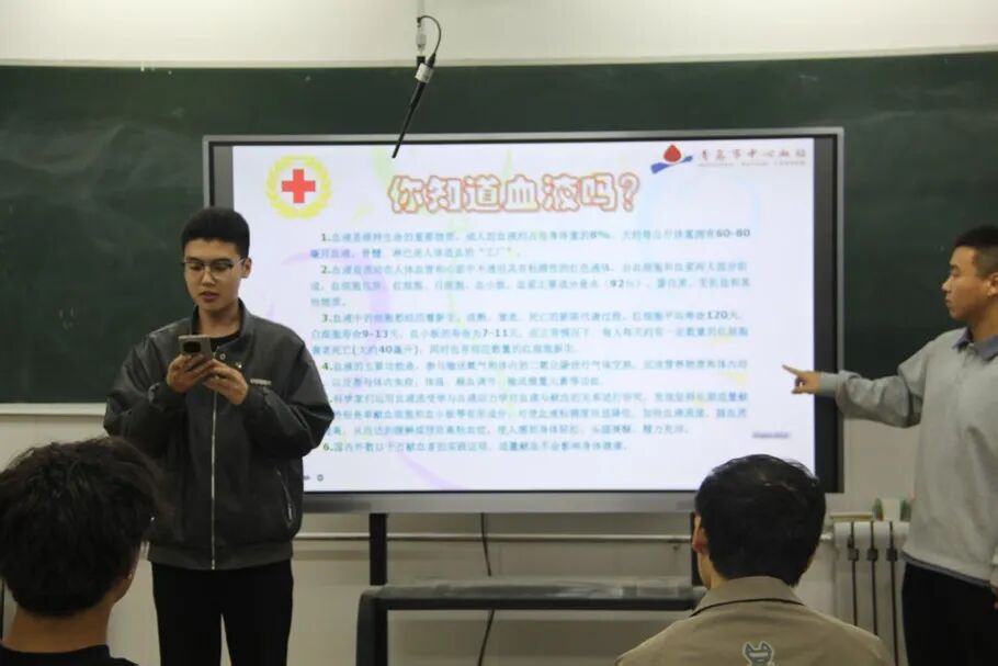 这天,学生干部们带着精心准备的PPT走进每一间教室。他们耐心解答“献血会不会影响学习”“献血后要注意什么”等疑问,拿出报名码为有意向的同学们提供机会。正是这一场场细致的进班宣讲,让更多同学放下顾虑,主动加入到献血队伍中。