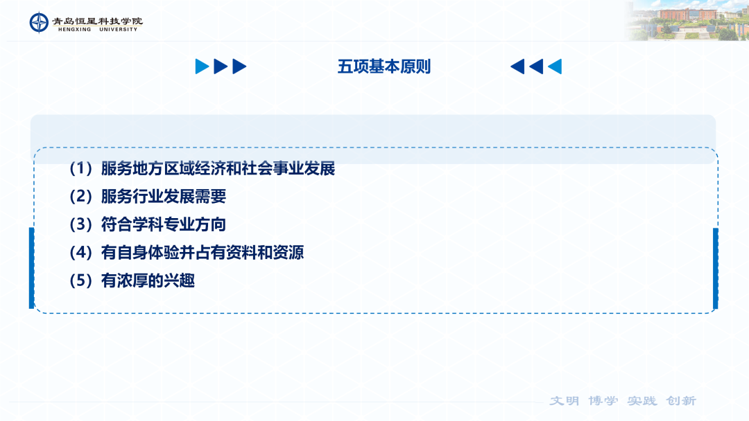 接着,在课题确定原则方面,王院长给全体教师明确了应用型课题确定五项基本原则。
