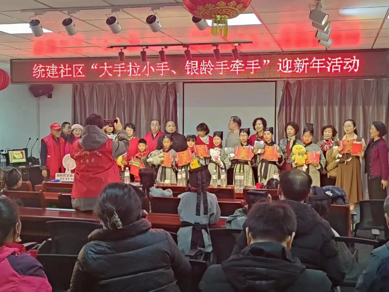 在此次活动中,我们参加了社区对社区老干部、优秀志愿者以及优秀学生的表彰会,仔细聆听社区干部们的宣讲,收获颇丰。之后,我们观看了社区成员带来的精彩绝伦的表演,与他们一起合唱歌曲《歌唱祖国》、一起朗诵。