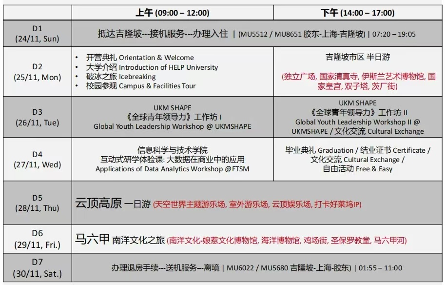 在这金秋送爽、硕果累累的季节里,国际教育再次迎来了一系列丰富多彩的研学活动。我校国际教育将于12月开展,马来西亚、泰国、韩国研学营。