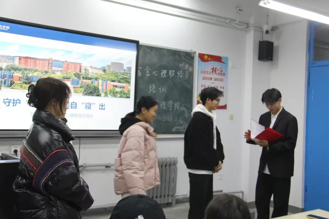 最后,张晓艳老师做精彩授课。她强调了宿舍心理联络员的定义、职责和工作重点,从宿舍人际关系调节、异常心理行为现象识别以及心理危机处理办法及流程三个方面,系统的讲解了在平时的学习与生活中应如何正确识别并处理同学和室友出现的心理问题,教授同学们处理常见心理问题的方式方法,并详细说明危机事件从发现到汇报的处理流程。在老师热情饱满、耐心细致的讲解下,学院宿舍心理联络员们放下手机认真听讲,全神贯注的学习该如何做一名合格的心理联络员。
