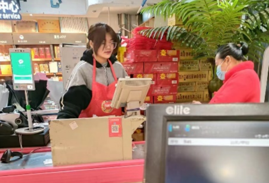 魏雨珊同学在超市担任收银员一职,每天都在超市站够九个小时收银,进行货物的搬运等工作,晚上要进行卫生的打扫和收银账目的清点。熟悉收银工作的流程,保障账目不出错等。